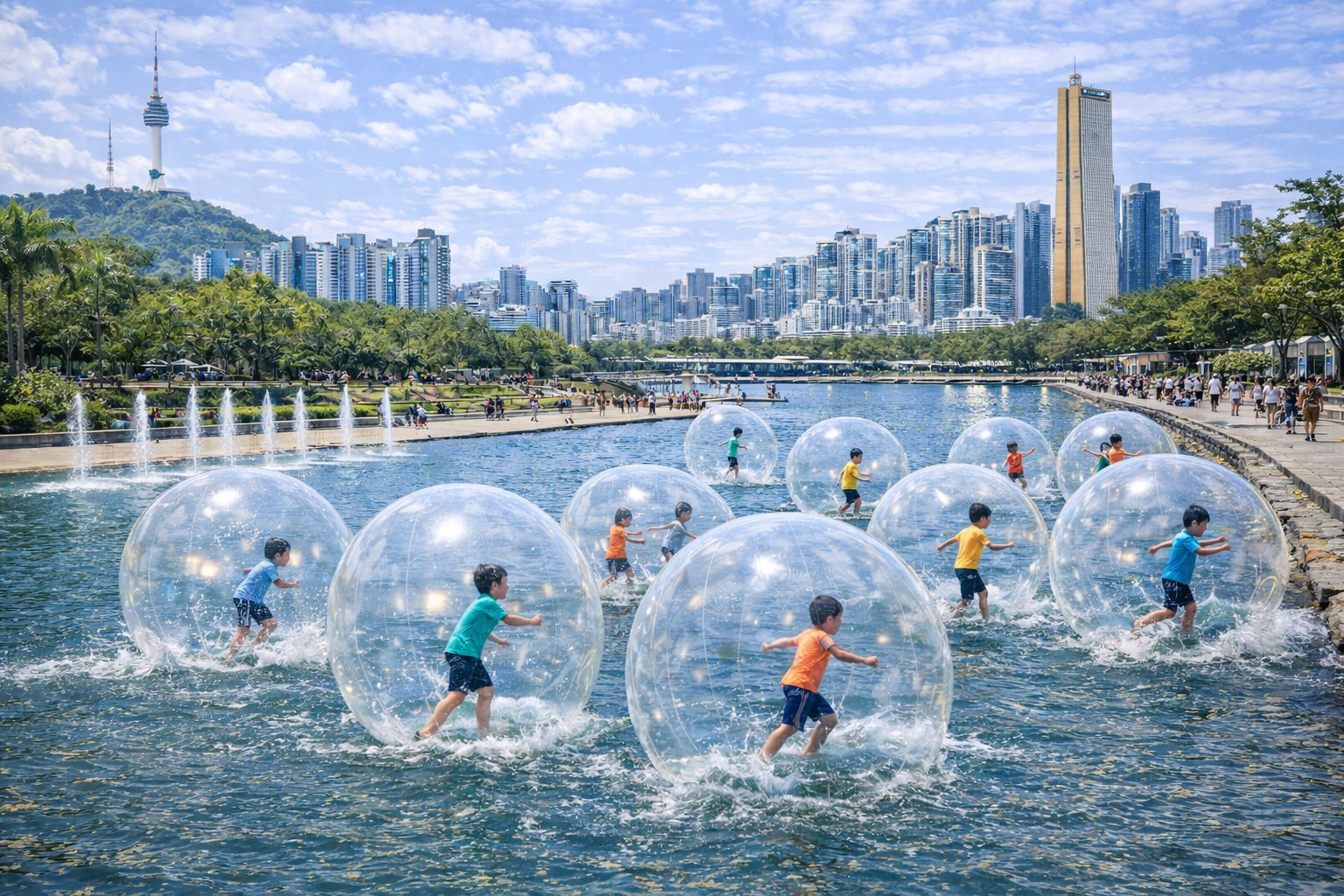 물빛광장 위에서 즐기는 체험형 액티비티, 워터볼 그라운드
