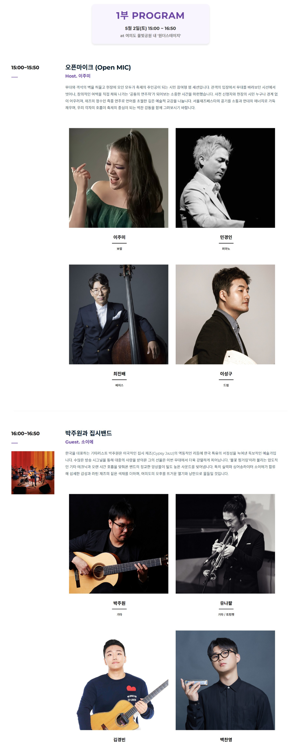 • - 16:00 ~ 16:50 / 박주원과 집시밴드 (게스트 소이에)