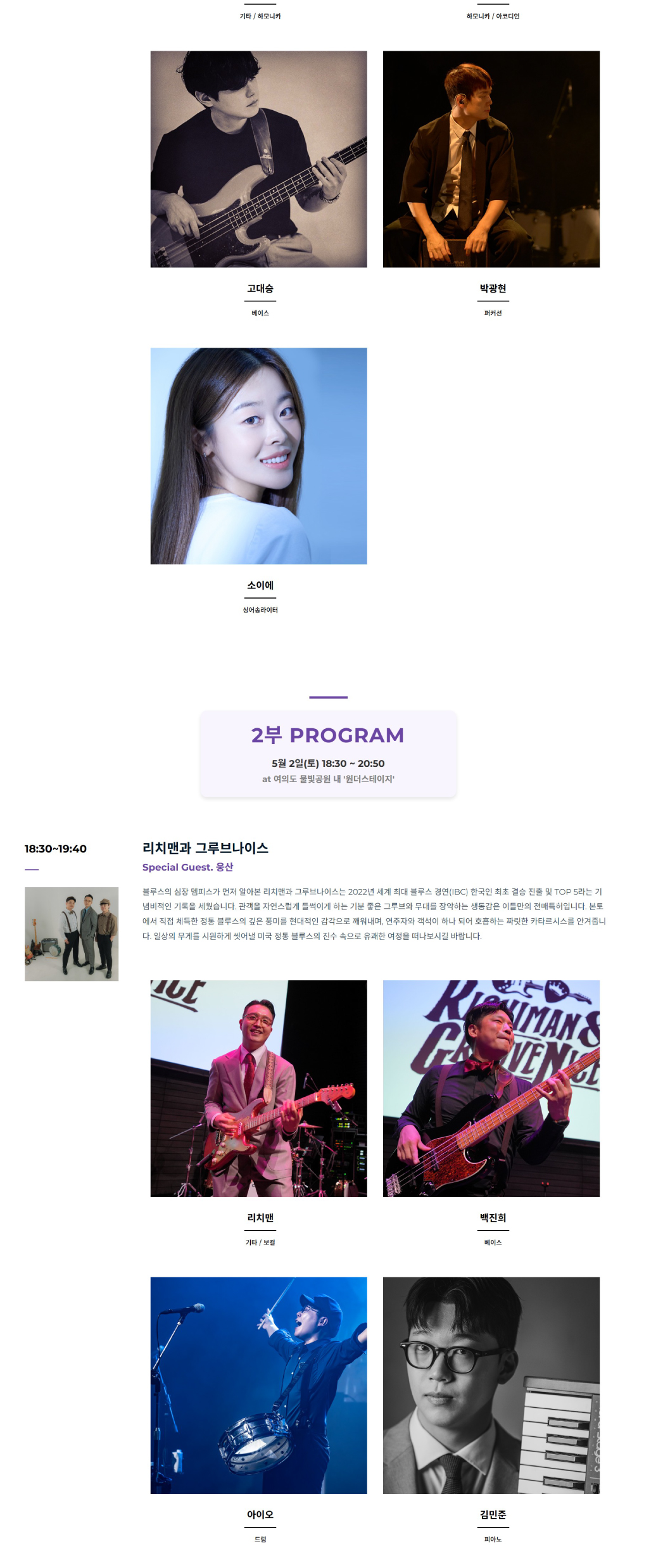 • - 18:30 ~ 19:40 / 리치맨과 그루브나이스 (스페셜 게스트 웅산)